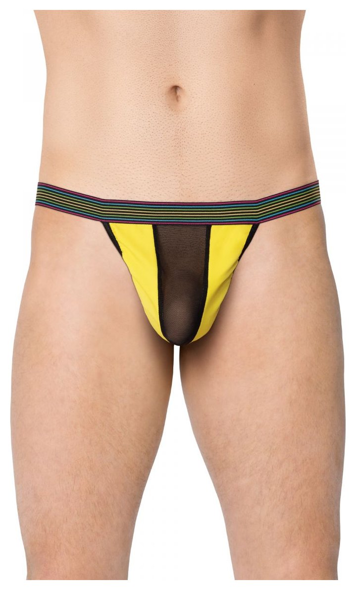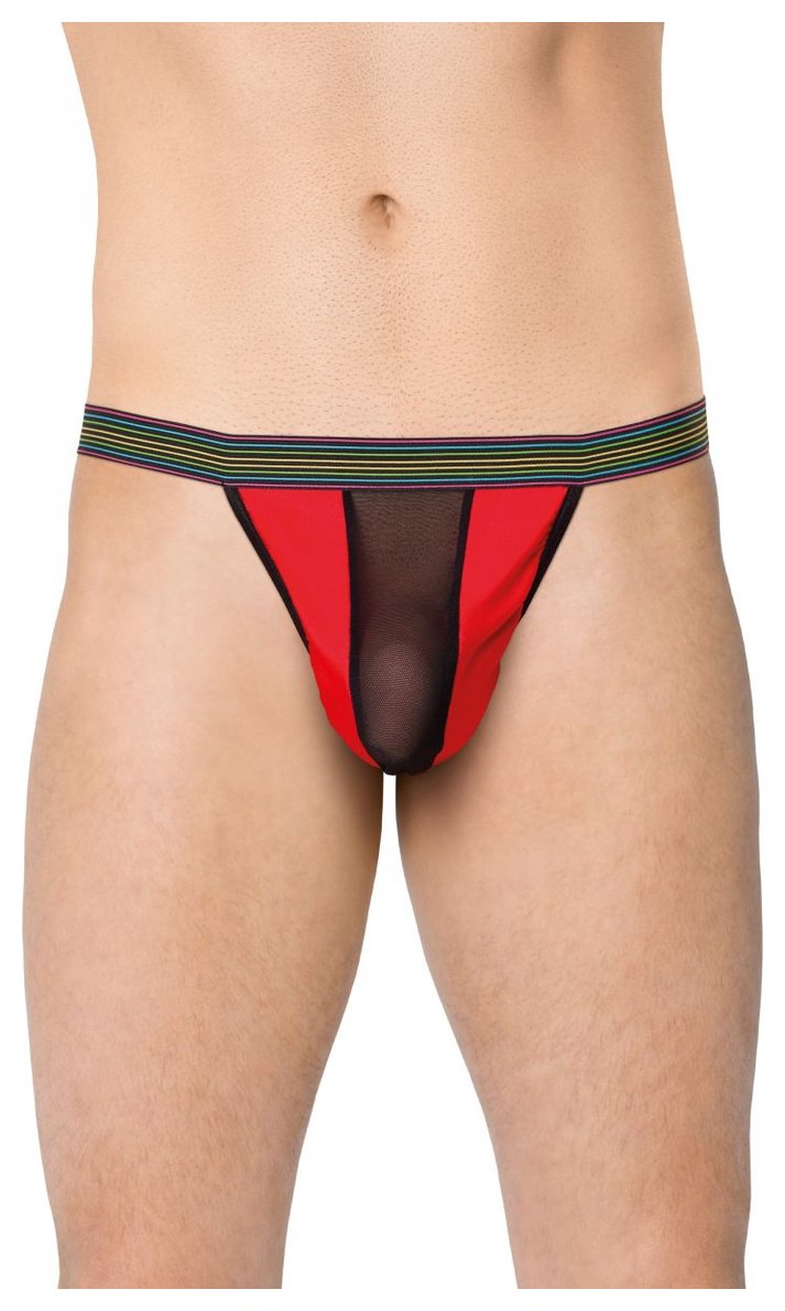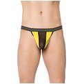 Яркие трусы-стринги с сетчатой вставкой по центру.