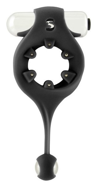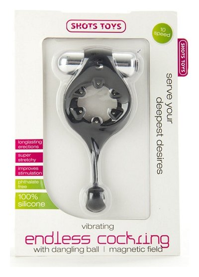 Чёрное эрекционное виброкольцо c шариком и магнитами Vibrating Endless Cockring Magnet