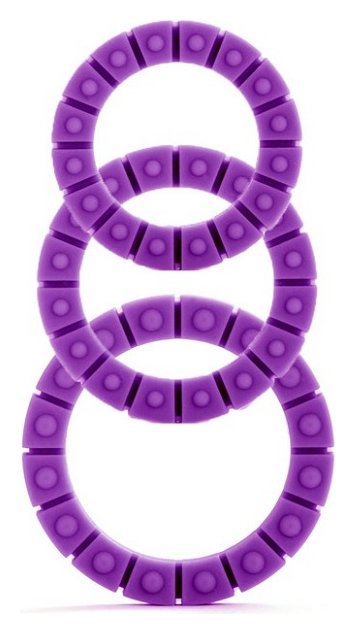 Благодаря этим фиолетовым колечкам разного размера вы сможете забыть о проблемах с эрекцией. Мягкие, прекрасно тянущиеся, покрытые шишечками (для стимуляции предвагинальной зоны партнёрши), они сохранят напряжение плоти на протяжении всей близости! Выбирайте большое, среднее или маленькое кольцо, и наслаждайтесь сексом на все 100%.