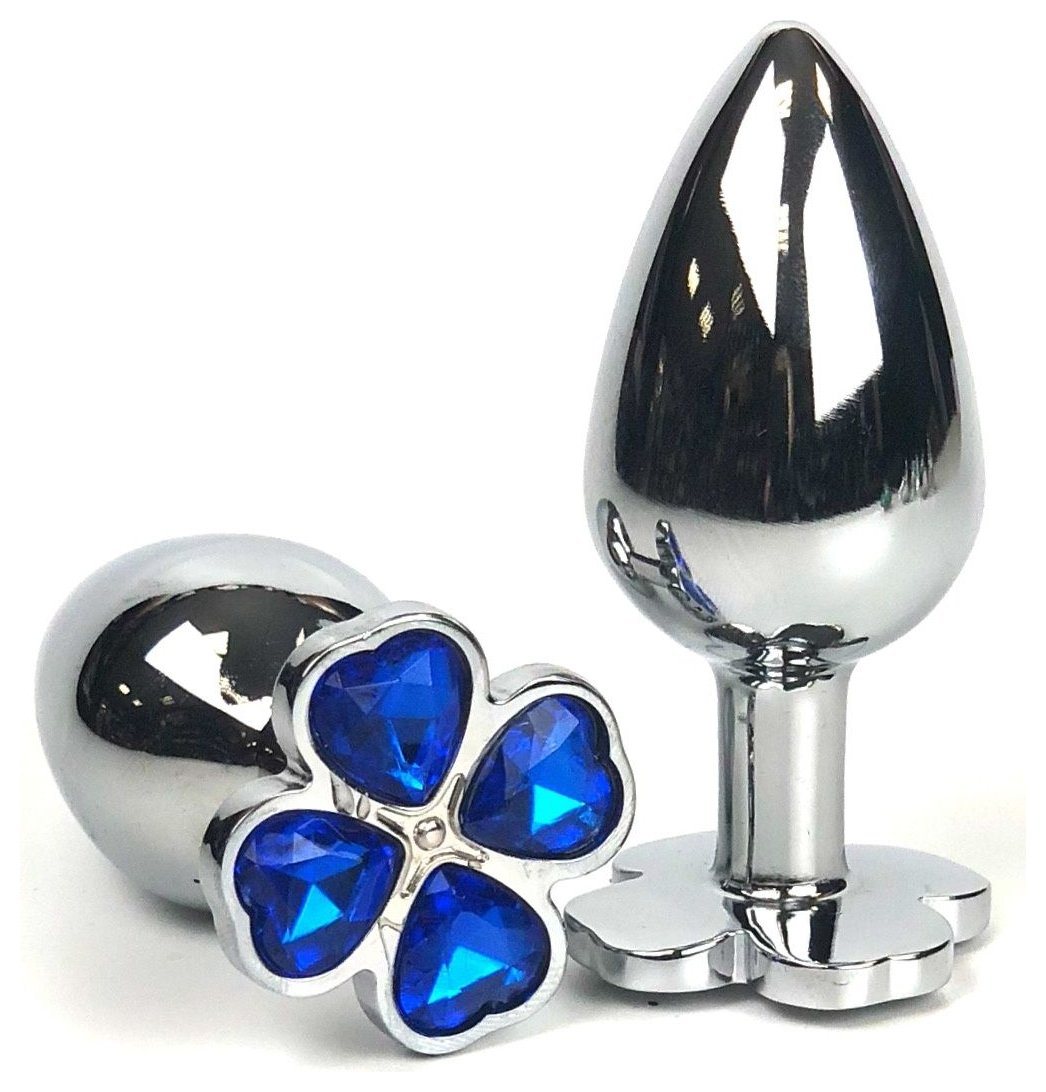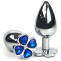 Серебристая анальная втулка с клевером из синих кристаллов - 9 см