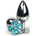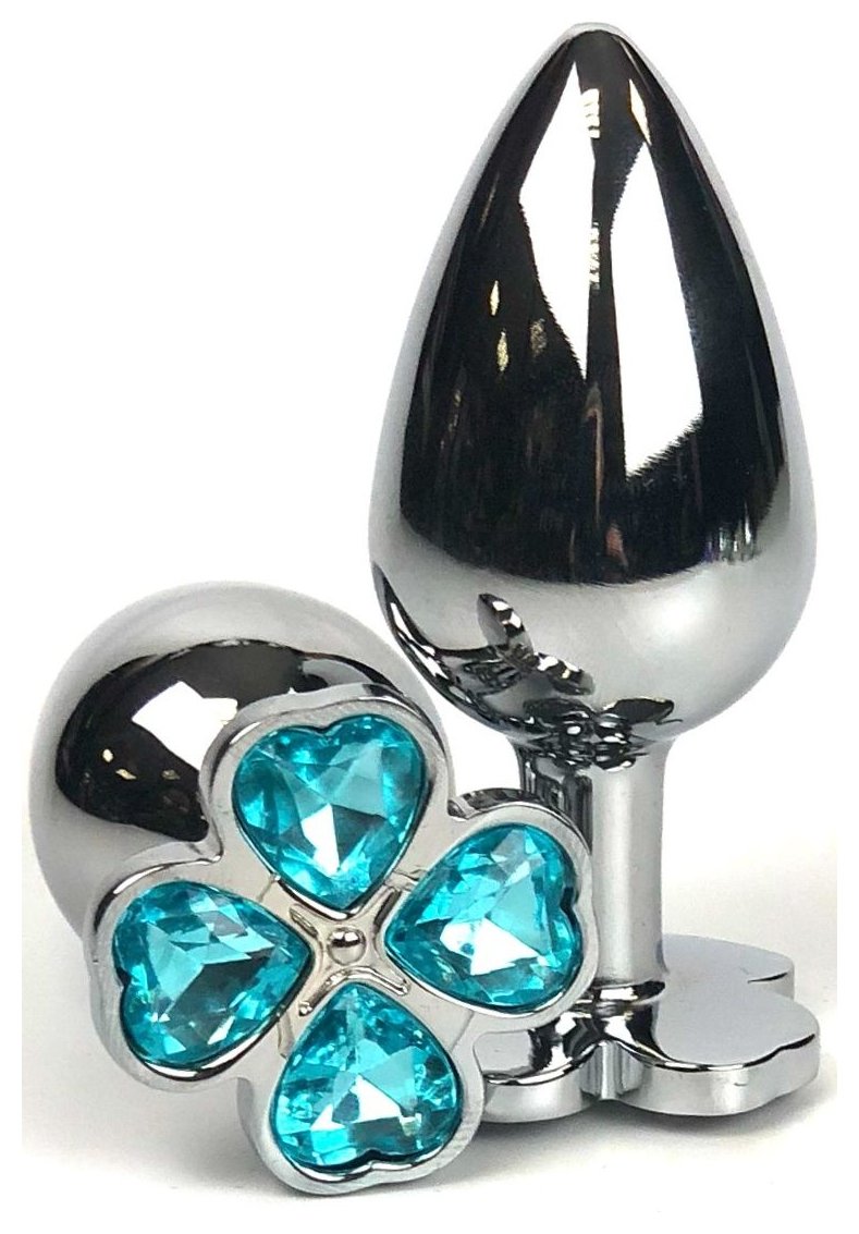 Серебристая анальная втулка с клевером из голубых кристаллов - 9 см