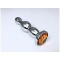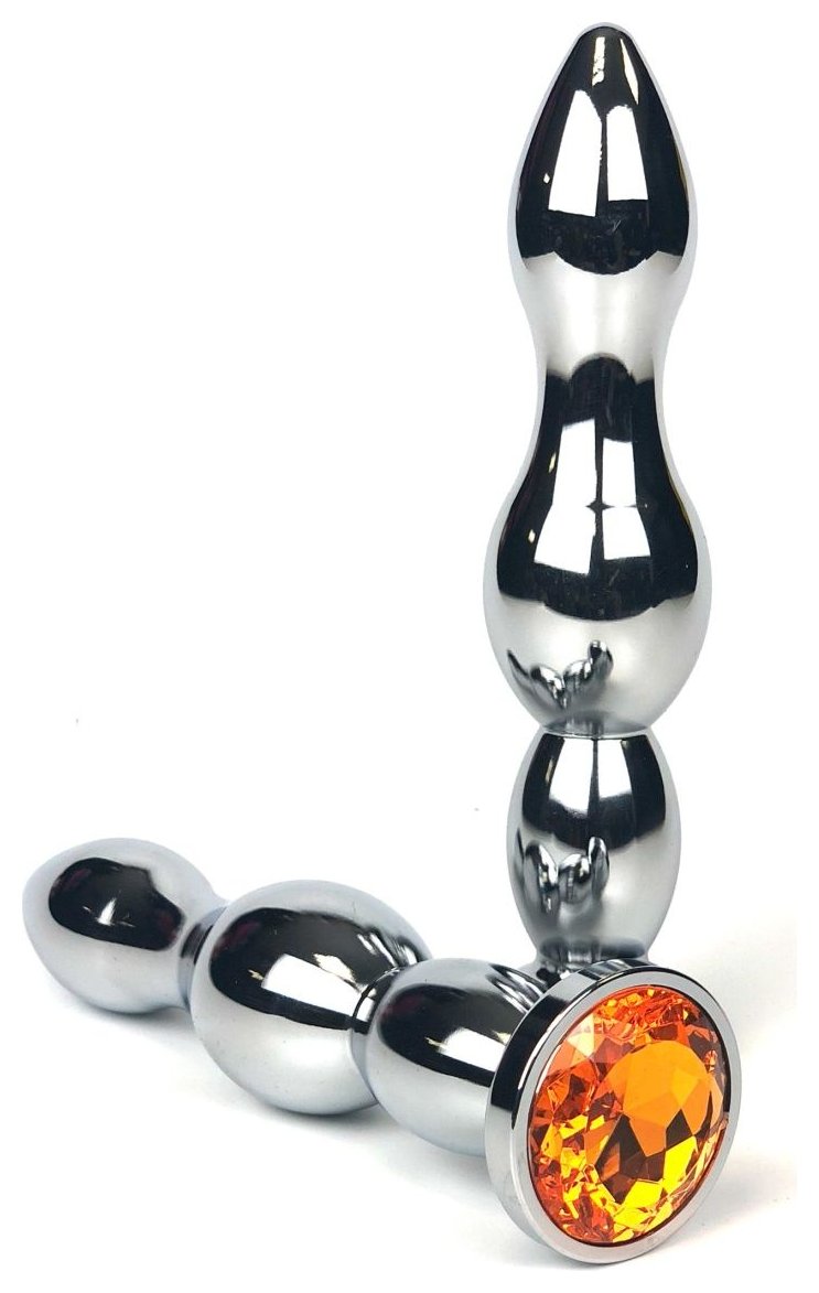 Серебристая анальная пробка-ёлочка с оранжевым кристаллом - 12 см