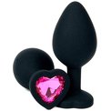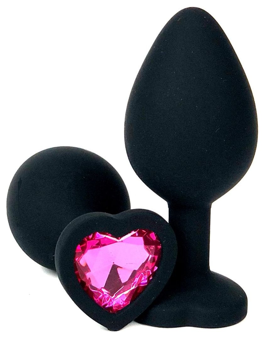 Черная силиконовая пробка с розовым кристаллом-сердцем - 8 см