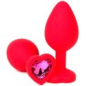 Красная силиконовая анальная пробка с розовым стразом-сердцем - 8 см