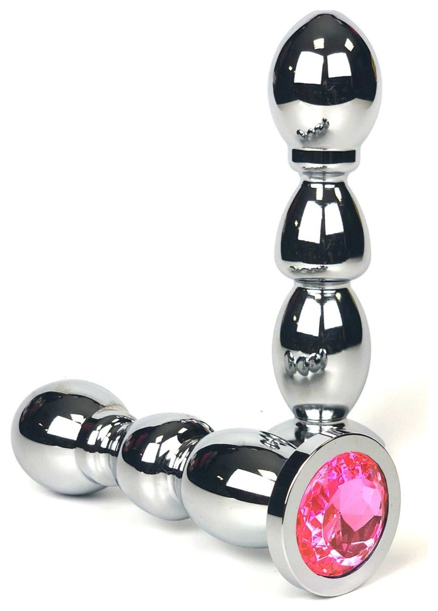 Серебристая анальная пробка-ёлочка с розовым кристаллом - 12,5 см