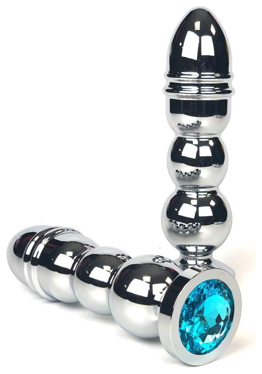 Серебристая анальная ёлочка с голубым кристаллом - 13 см