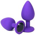 Фиолетовая анальная пробка с черным стразом - 6,8 см