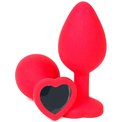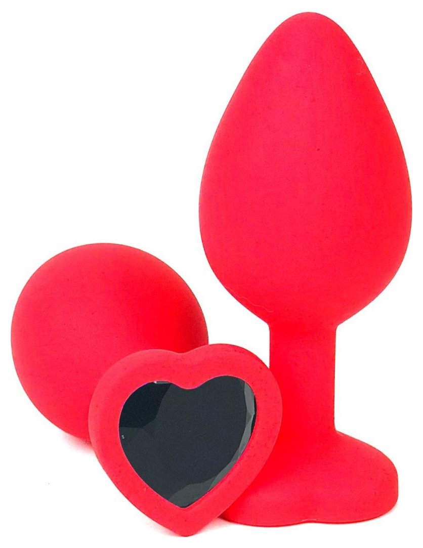 Красная силиконовая анальная пробка с черным стразом-сердцем - 8 см