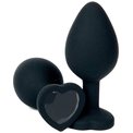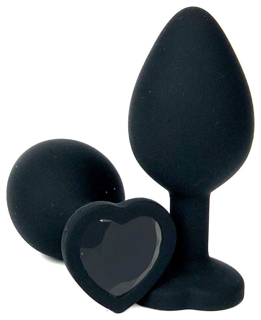 Черная силиконовая пробка с черным кристаллом-сердцем - 10,5 см