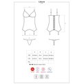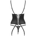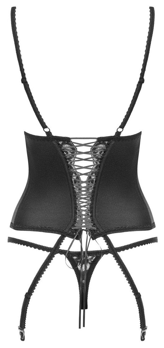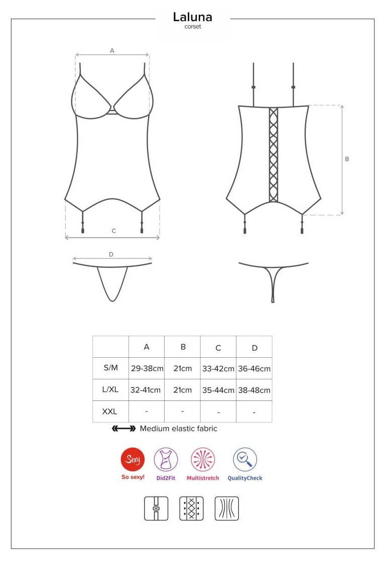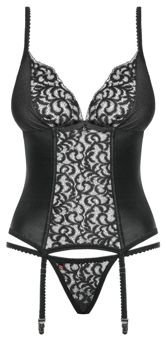 Роскошный корсаж Laluna с подвязками для чулок выполнен из эластичной блестящей ткани и красивого кружева. Лиф мягкий без косточек, бретели и подвязки регулируются по длине. На спинке очаровательная шнуровка. В комплекте: корсаж и трусики-стринги.