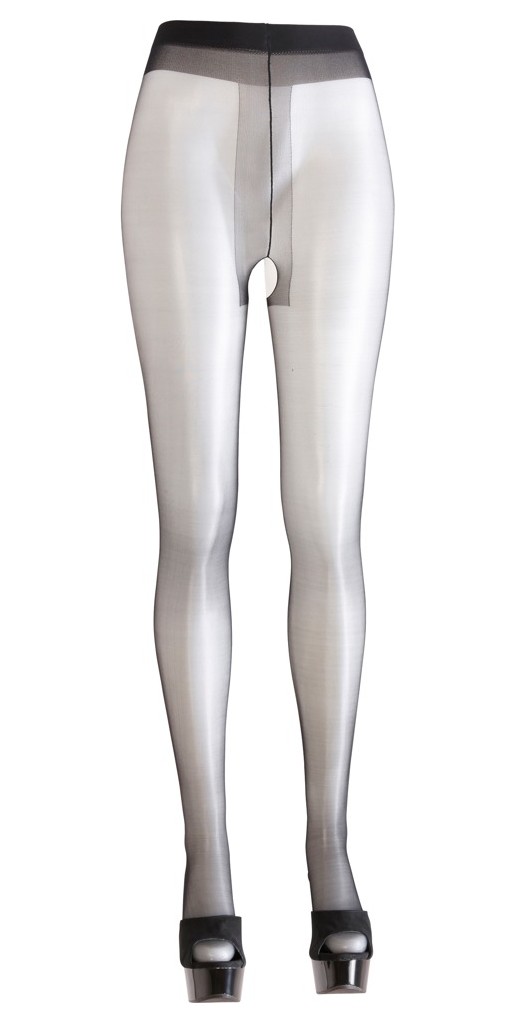 Женские колготки с атласным сиянием. С непрозрачной частью трусиков и открытой промежностью.