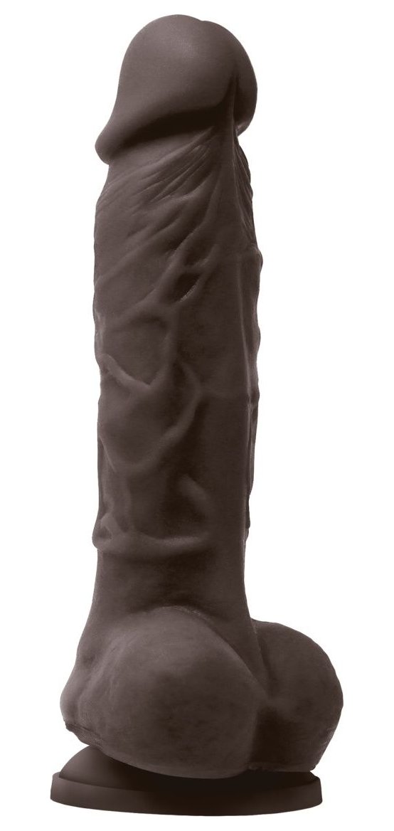 Коричневый силиконовый фаллоимитатор с мошонкой Pleasures 5 Dildo - 18 см