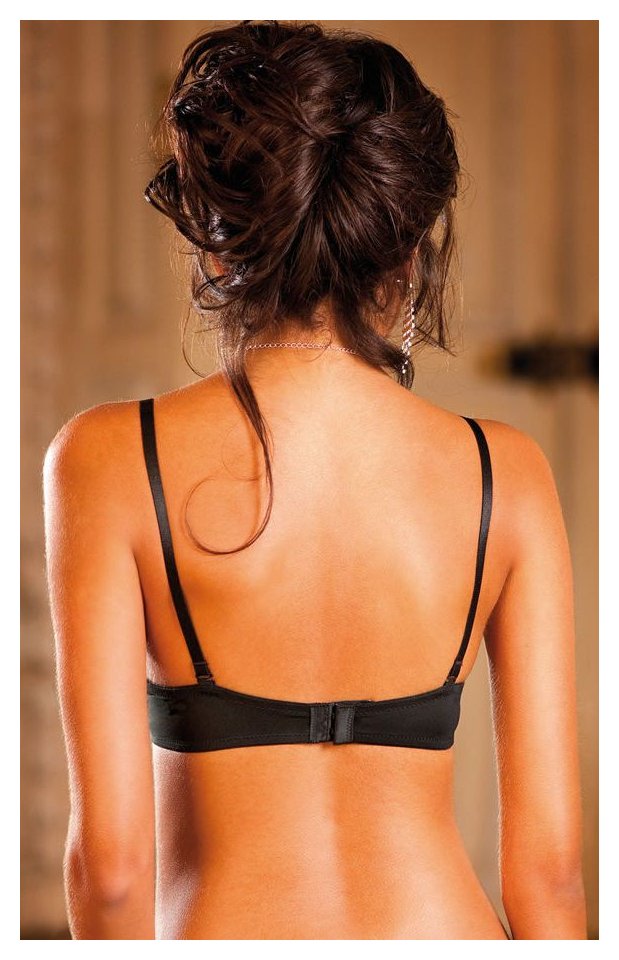 Этот черный, пробуждающий фантазию бюстгальтер с непросвечивающими чашечками и съемными бретельками олицетворяет элегантность и сексуальный призыв. Его специальная увеличивающая форма мгновенно околдовывает, создавая объемное, соблазнительное декольте, а широкие ленты по бокам делают его особенно удобным.