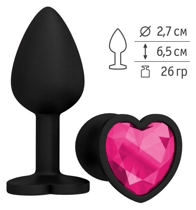 Черная силиконовая пробка с малиновым кристаллом - 7,3 см