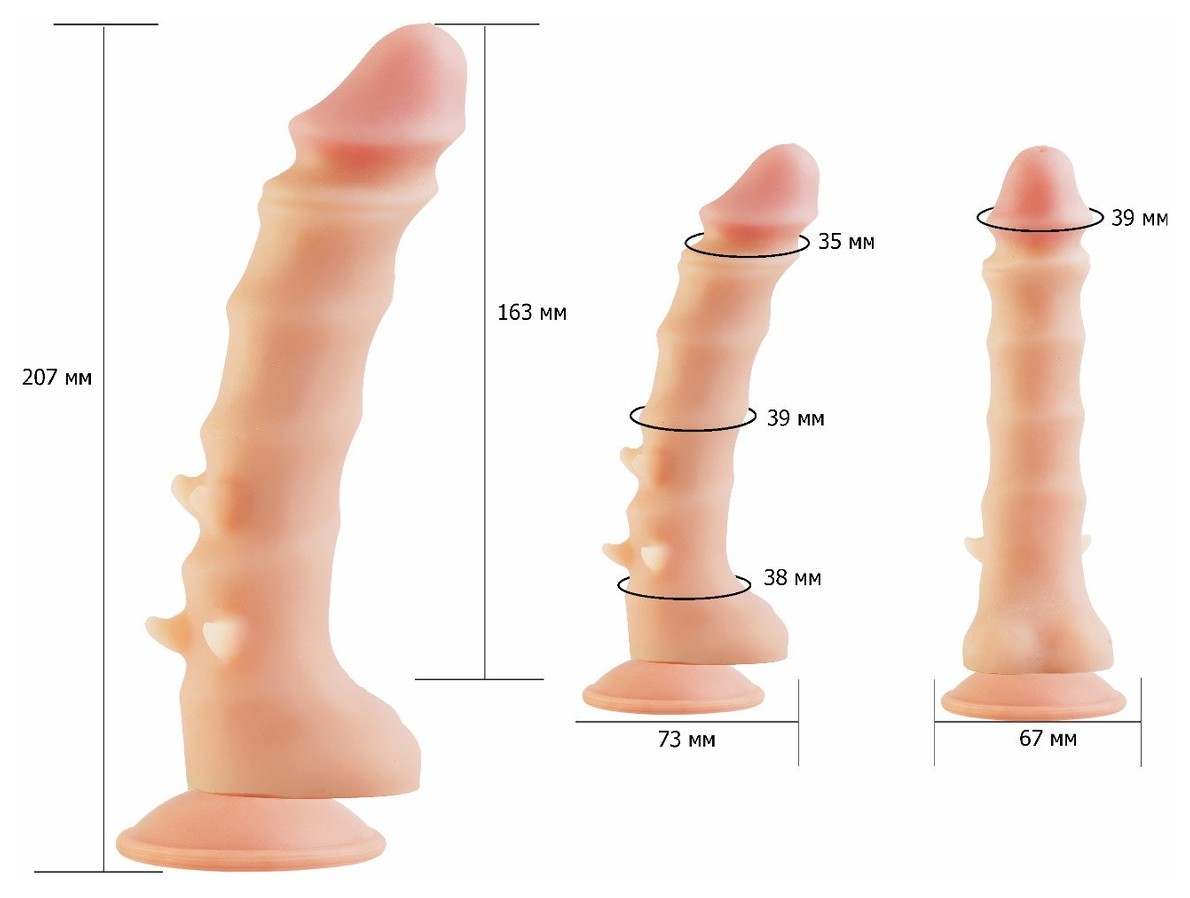 Телесный фаллоимитатор с шипиками и присоской - 21,5 см