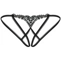 Контактные кружевные трусики невероятно сексуального дизайна. Сзади – геометрические переплетения ажурных лент, которые делают ягодицы еще более соблазнительными. Спереди – причудливая узорная паутинка кружева. Трусики ничего не прячут от глаз наблюдателя. Самое пикантное местечко остается в открытом интимном доступе. Их не придется снимать даже при самом тесном контакте. Игривый и очень изысканный вариант эротичной одежды для страстных раскованных вечеров.