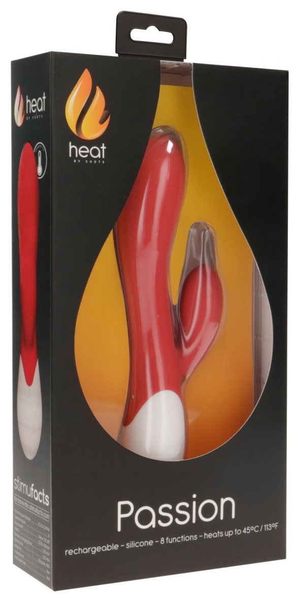 Красный вибратор-кролик Passion с функцией нагрева - 20 см