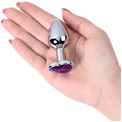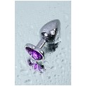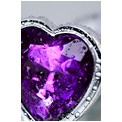 Серебристая коническая анальная пробка с фиолетовым кристаллом-сердечком - 7 см