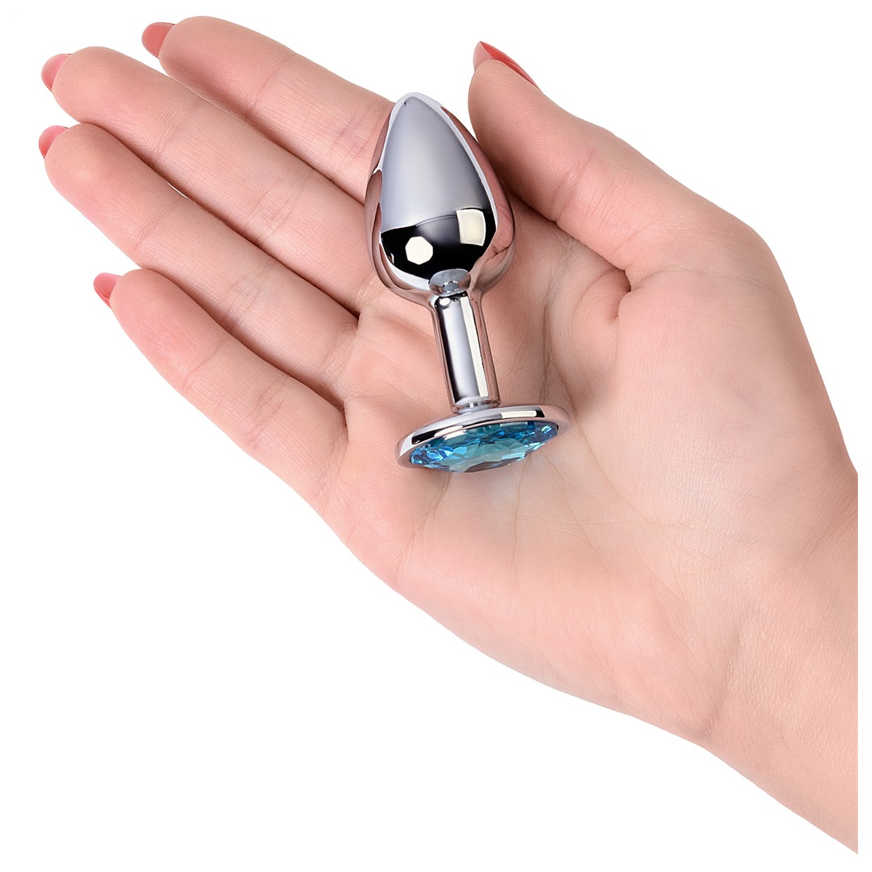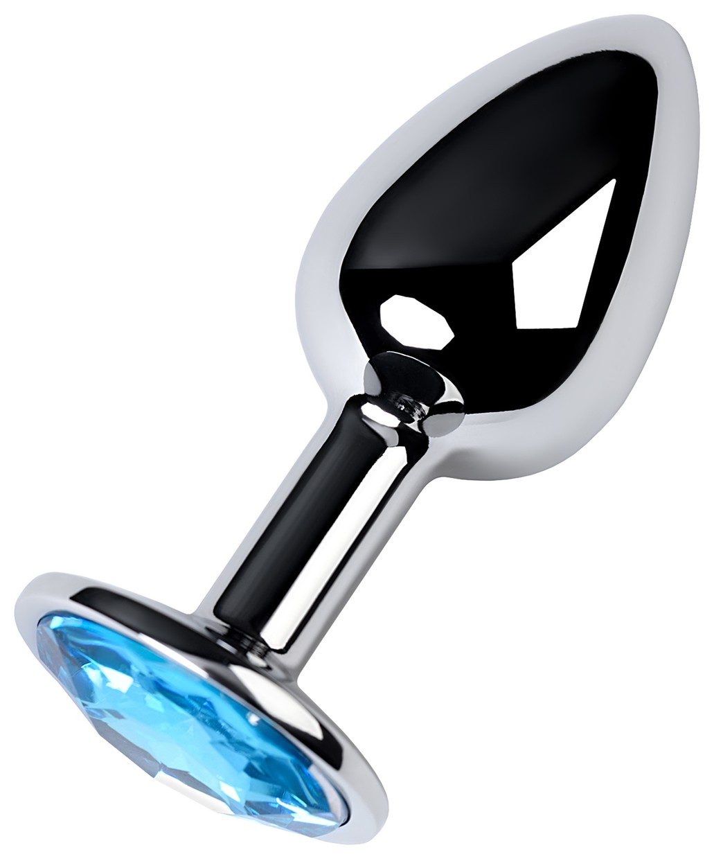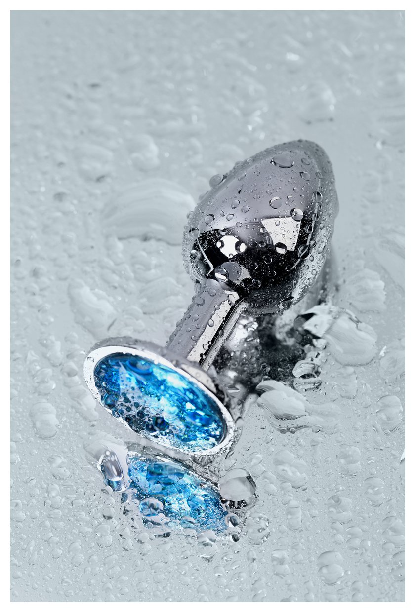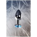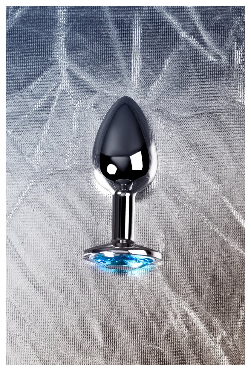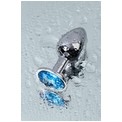 Серебристая конусовидная анальная пробка с голубым кристаллом - 7 см.
