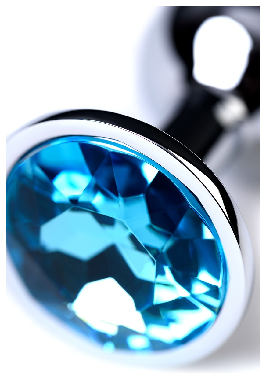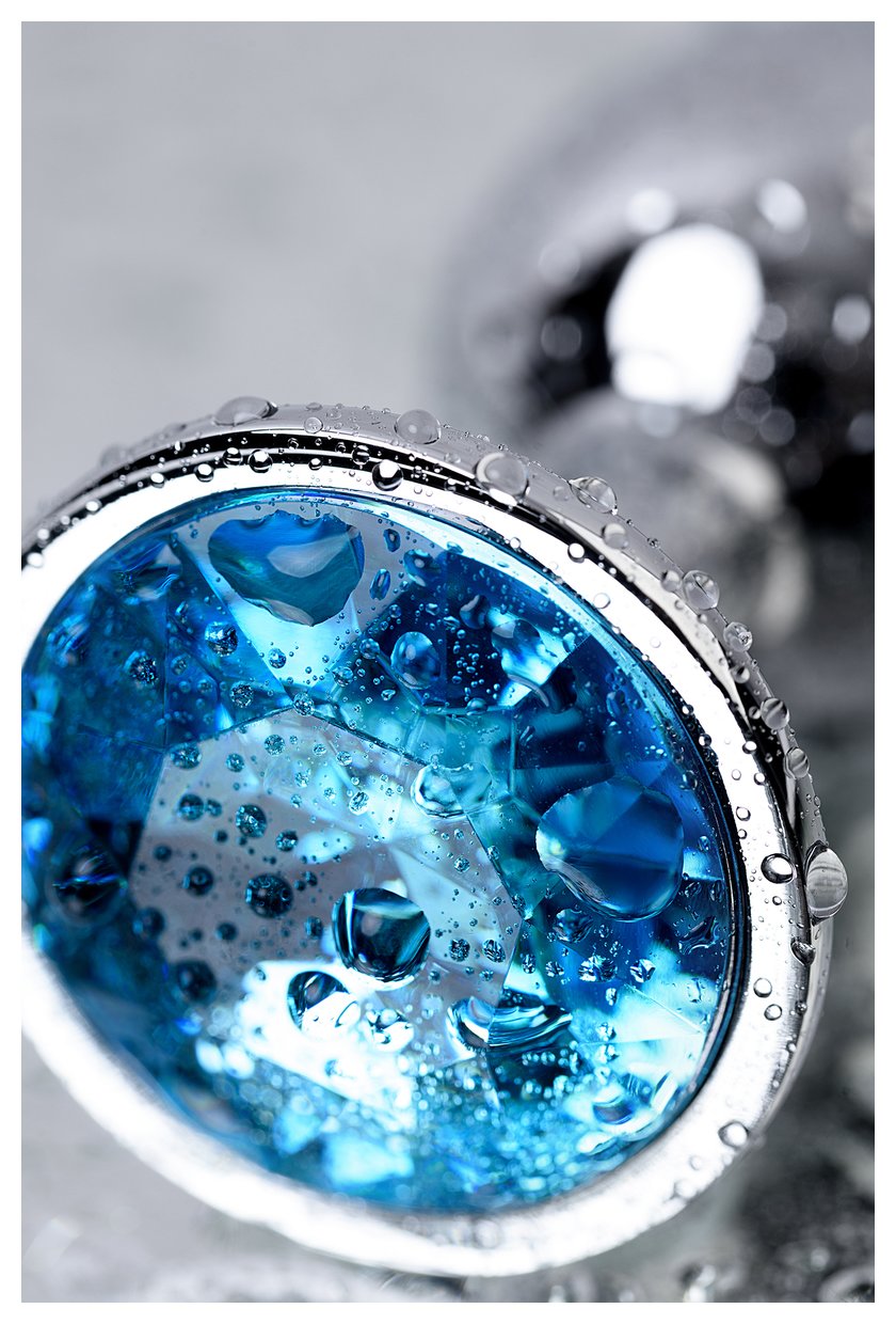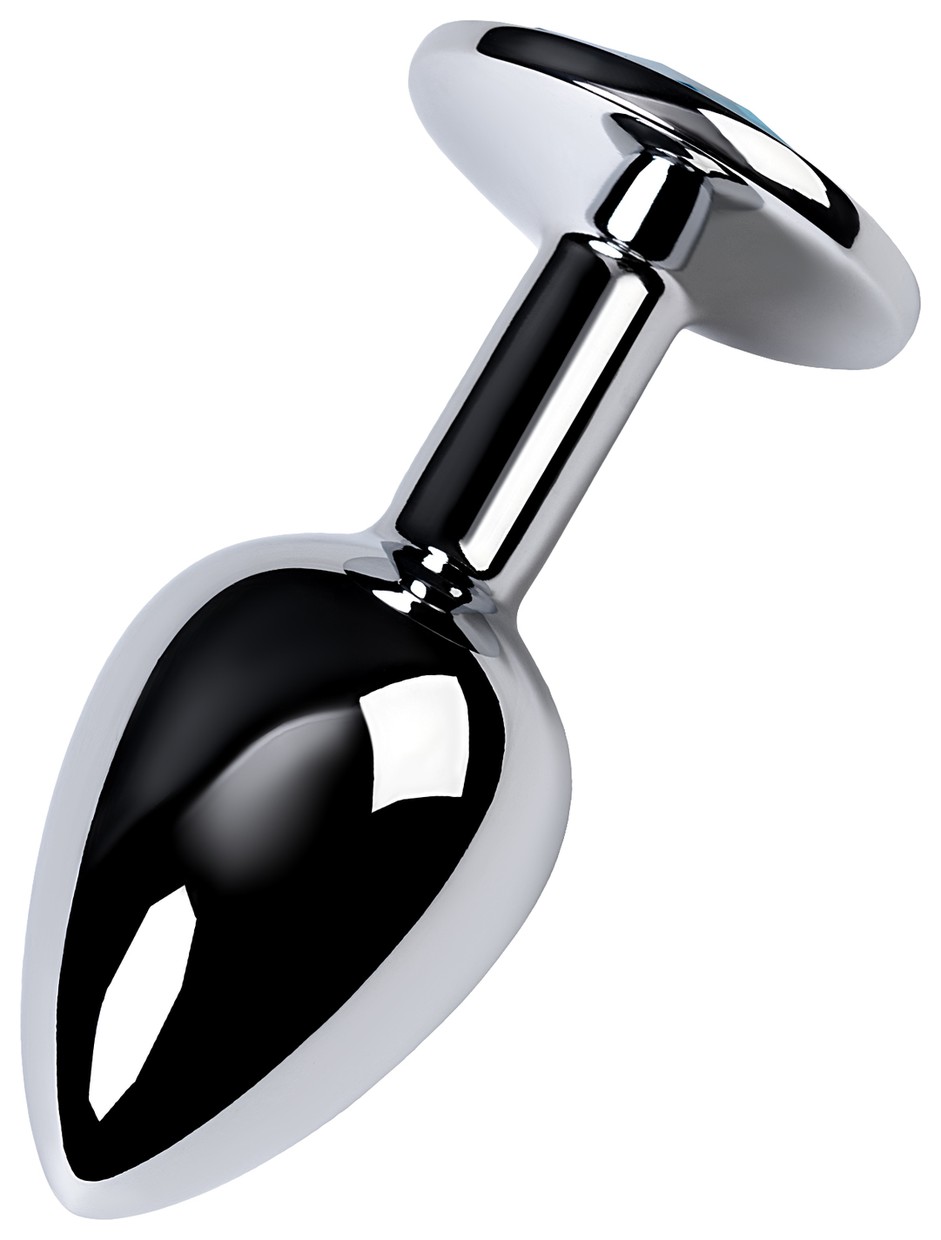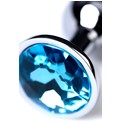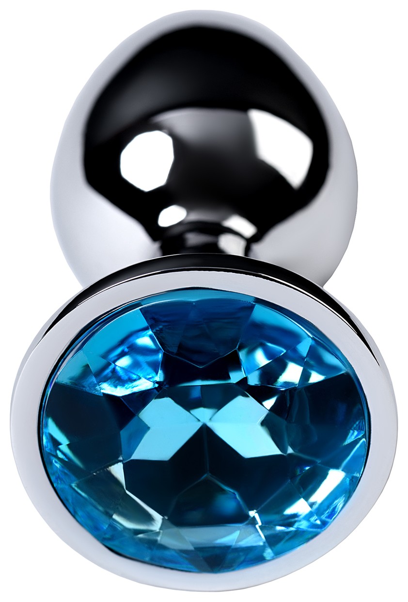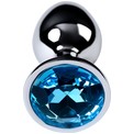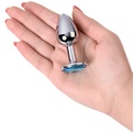 Серебристая конусовидная анальная пробка с голубым кристаллом - 7 см.