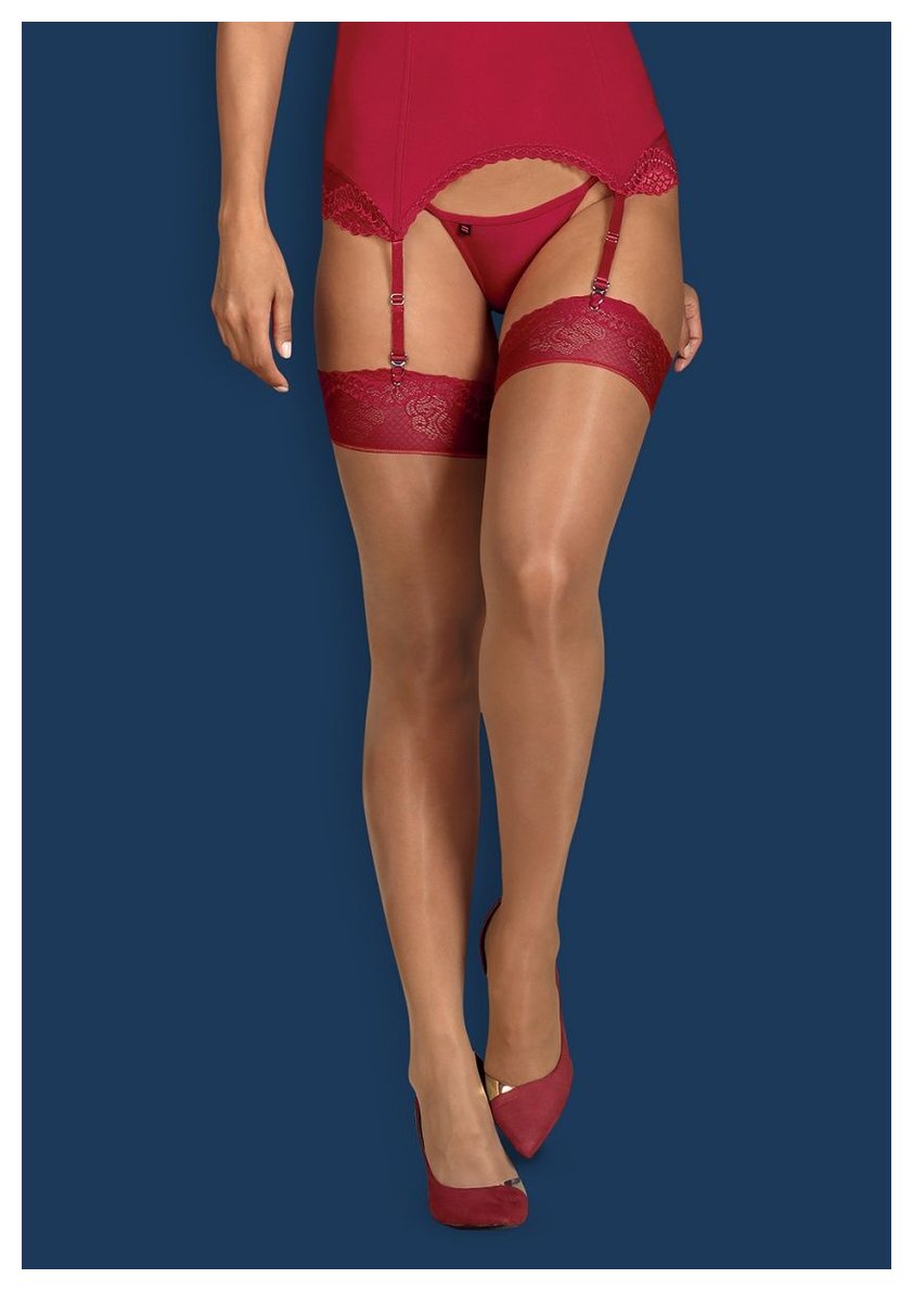 Тонкие чулки с кружевной резинкой. Предназначены для ношения с поясом.