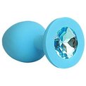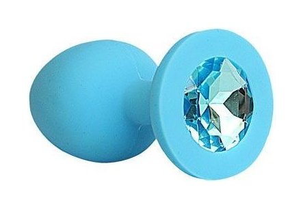 Голубая силиконовая анальная пробка с голубым кристаллом - 9,5 см