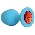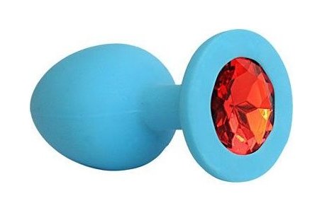 Голубая силиконовая анальная пробка с красным кристаллом - 9,5 см