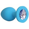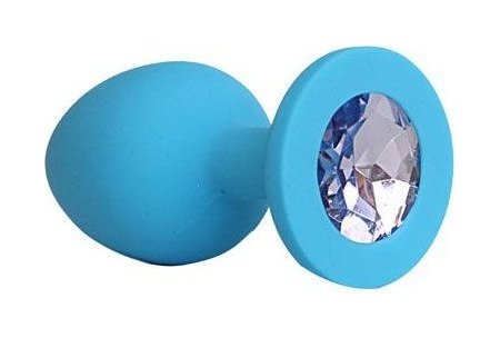 Голубая силиконовая анальная пробка с фиолетовым кристаллом - 9,5 см