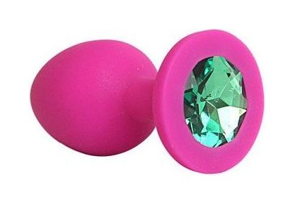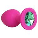 Ярко-розовая анальная пробка с зеленым кристаллом - 9,5 см