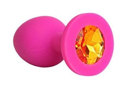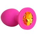 Ярко-розовая анальная пробка с оранжевым кристаллом - 9,5 см
