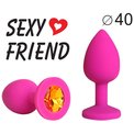 Силиконовая анальная втулка из серии Sexy Friend позволит по-новому взглянуть на сексуальное удовольствие! Интимный аксессуар выполнен в классической конусной форме, которая гарантирует деликатное и комфортное введение. Для контроля глубины проникновения втулка снабжена удобным ограничителем. Анальная пробка выполнена в яркой цветовой гамме, изготовлена из гипоаллергенного материала - силикона и украшена кристаллом.