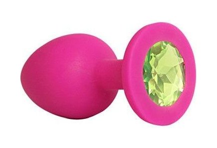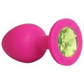 Ярко-розовая анальная пробка с салатовым кристаллом - 9,5 см