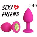 Силиконовая анальная втулка из серии Sexy Friend позволит по-новому взглянуть на сексуальное удовольствие! Интимный аксессуар выполнен в классической конусной форме, которая гарантирует деликатное и комфортное введение. Для контроля глубины проникновения втулка снабжена удобным ограничителем. Анальная пробка выполнена в яркой цветовой гамме, изготовлена из гипоаллергенного материала - силикона и украшена кристаллом.