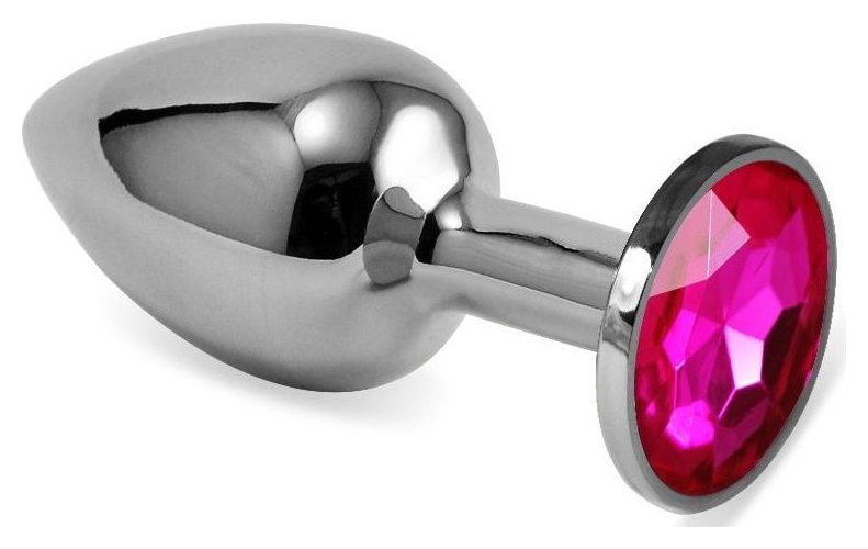 Серебристая гладкая анальная пробка с розовым кристаллом - 5,5 см