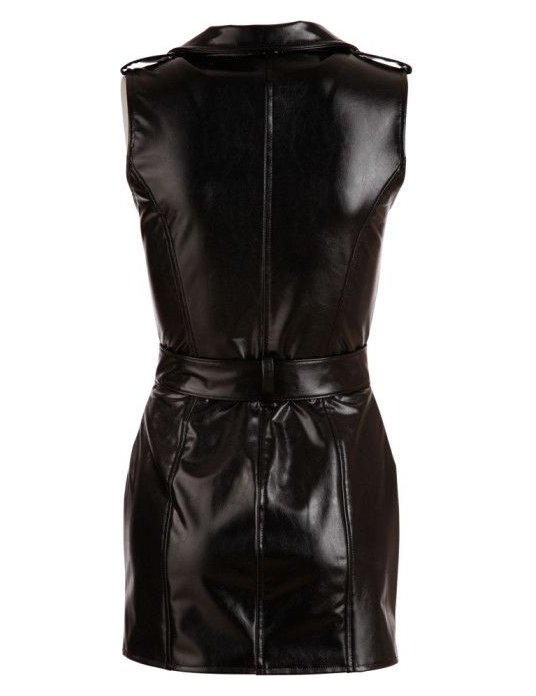 Сексуальное платье из материала под кожу. Воротник по типу косухи - на молнии. Широкий пояс.