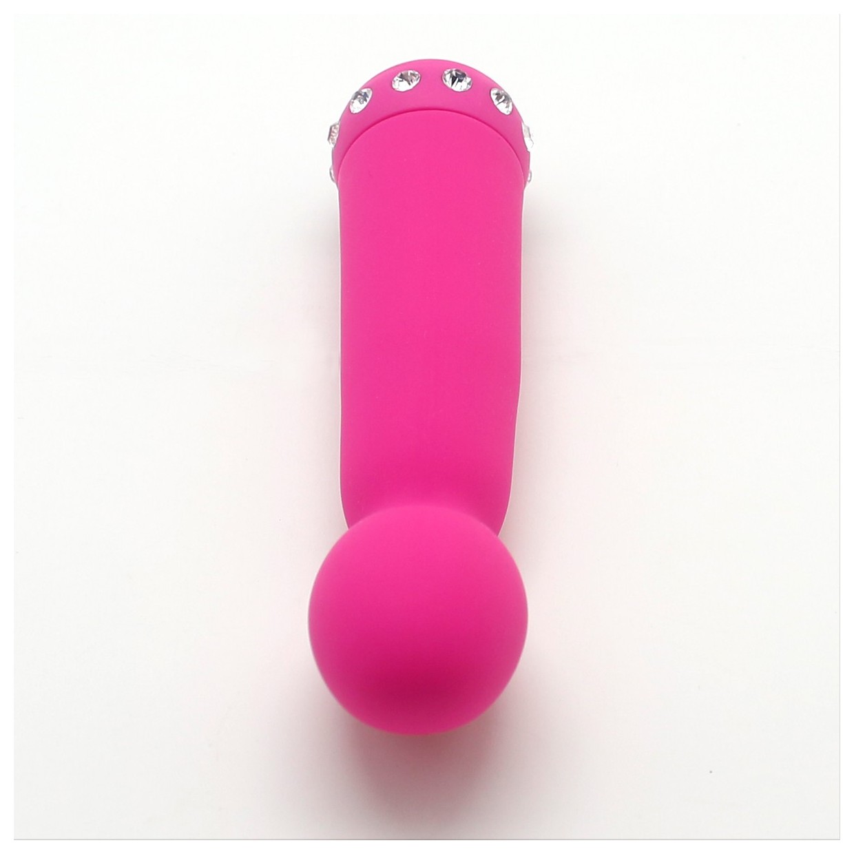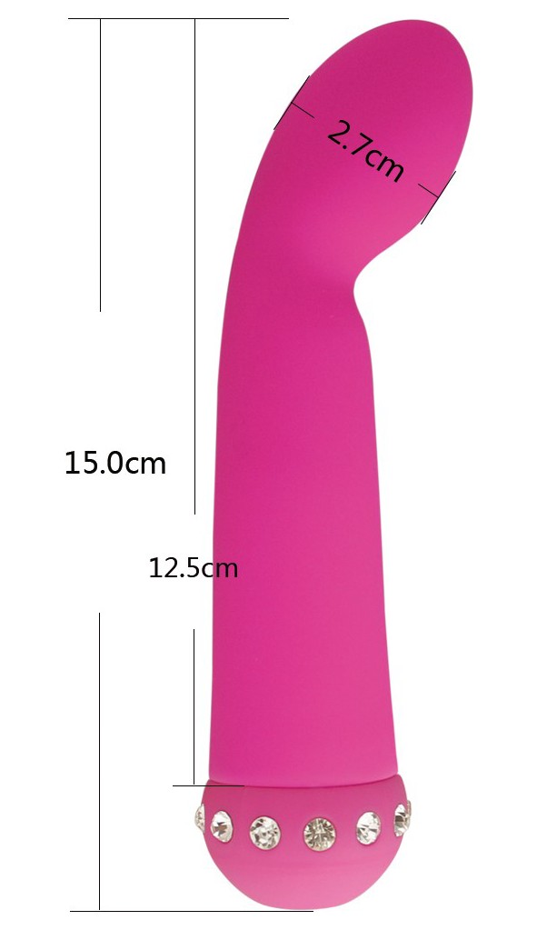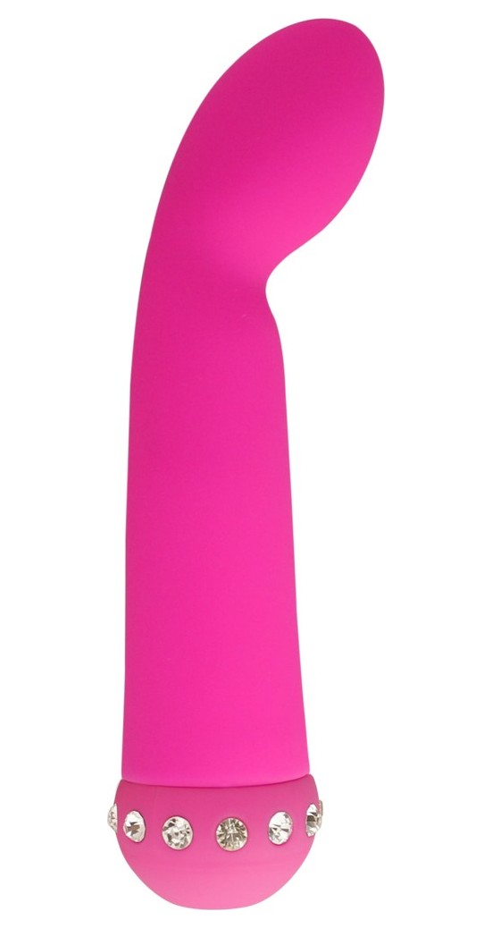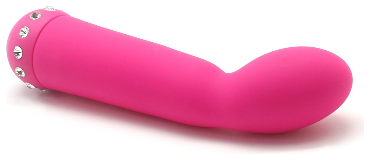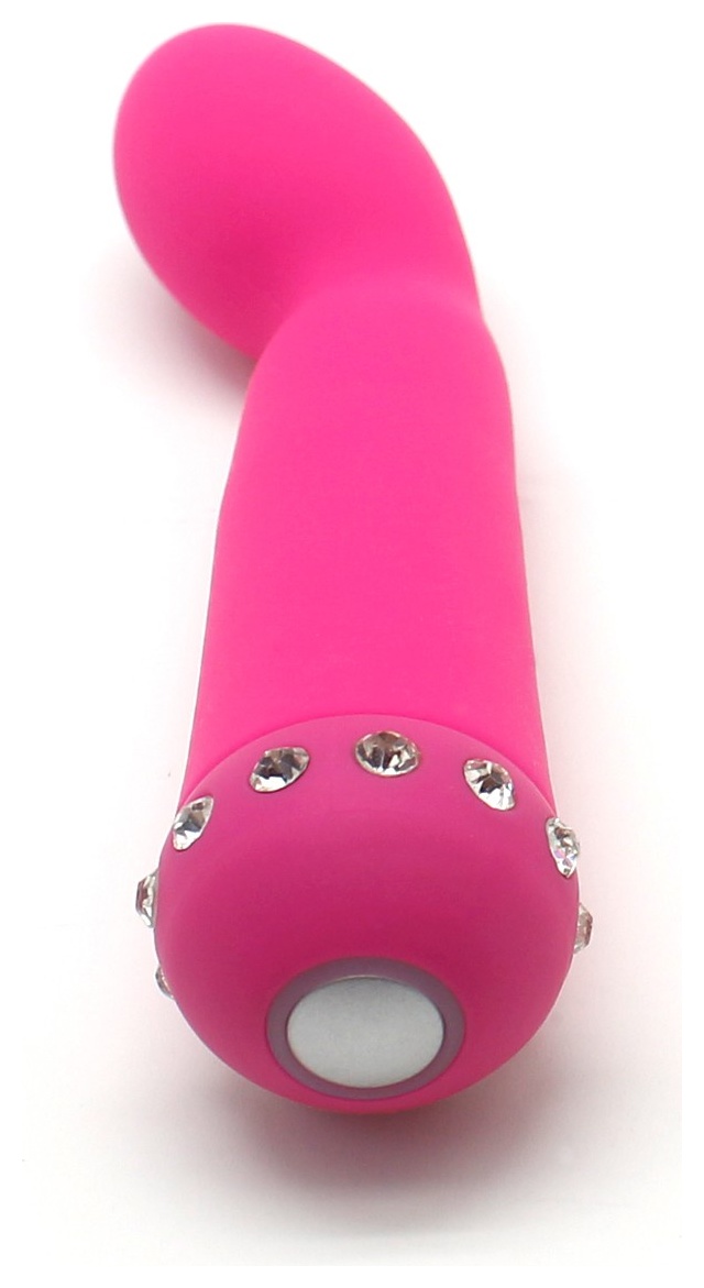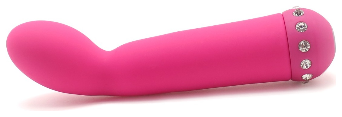 Аккуратный вибратор небольшого размера идеально подойдет для стимуляции точки G благодаря своей изогнутой форме. Изготовлен из нежнейшего силикона, бархатистого на ощупь, украшен стразами. Имеет 10 режимов вибрации, которые регулируются кнопкой в основании игрушки. Рабочая длина - 12 см.