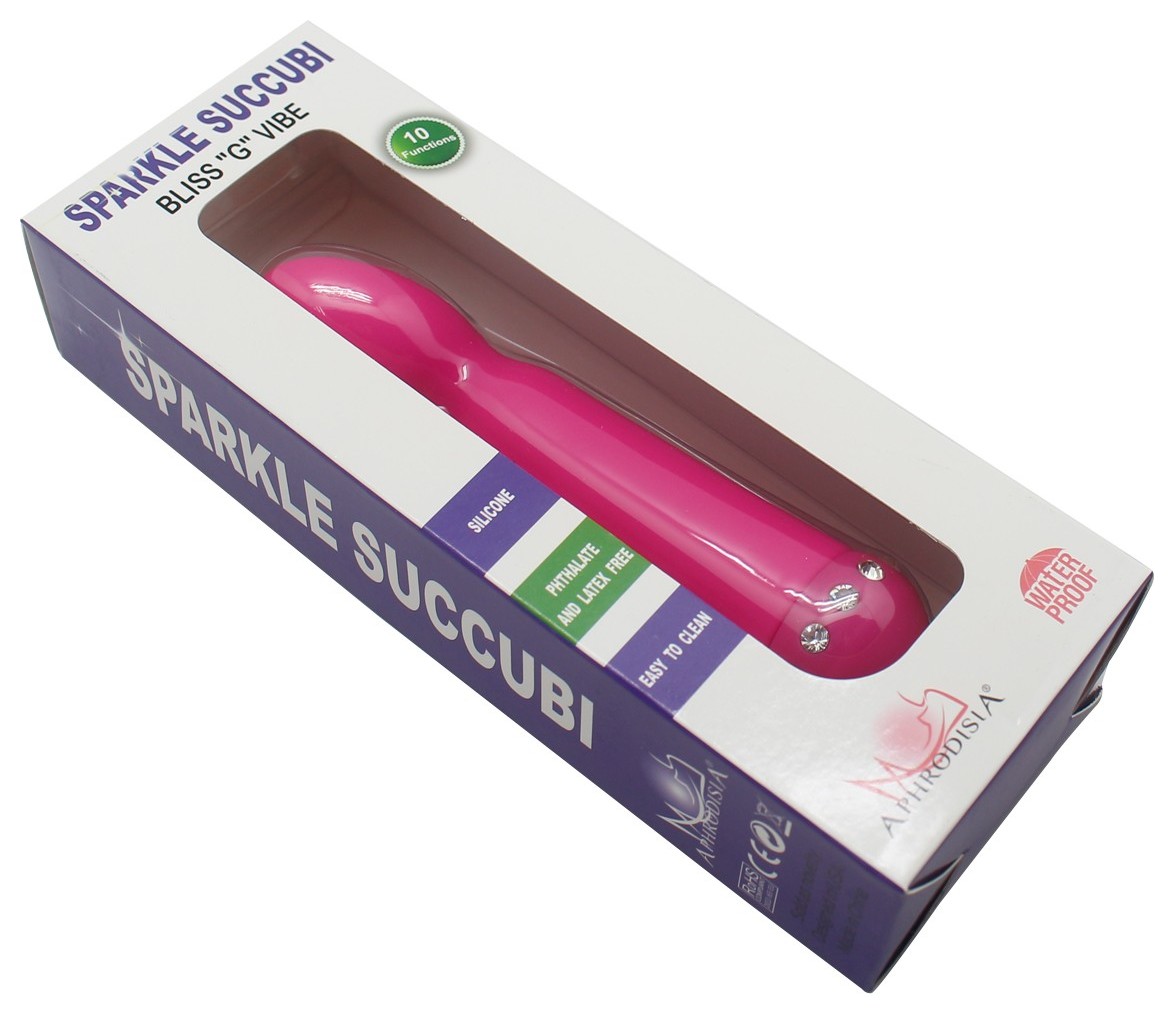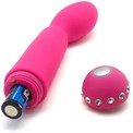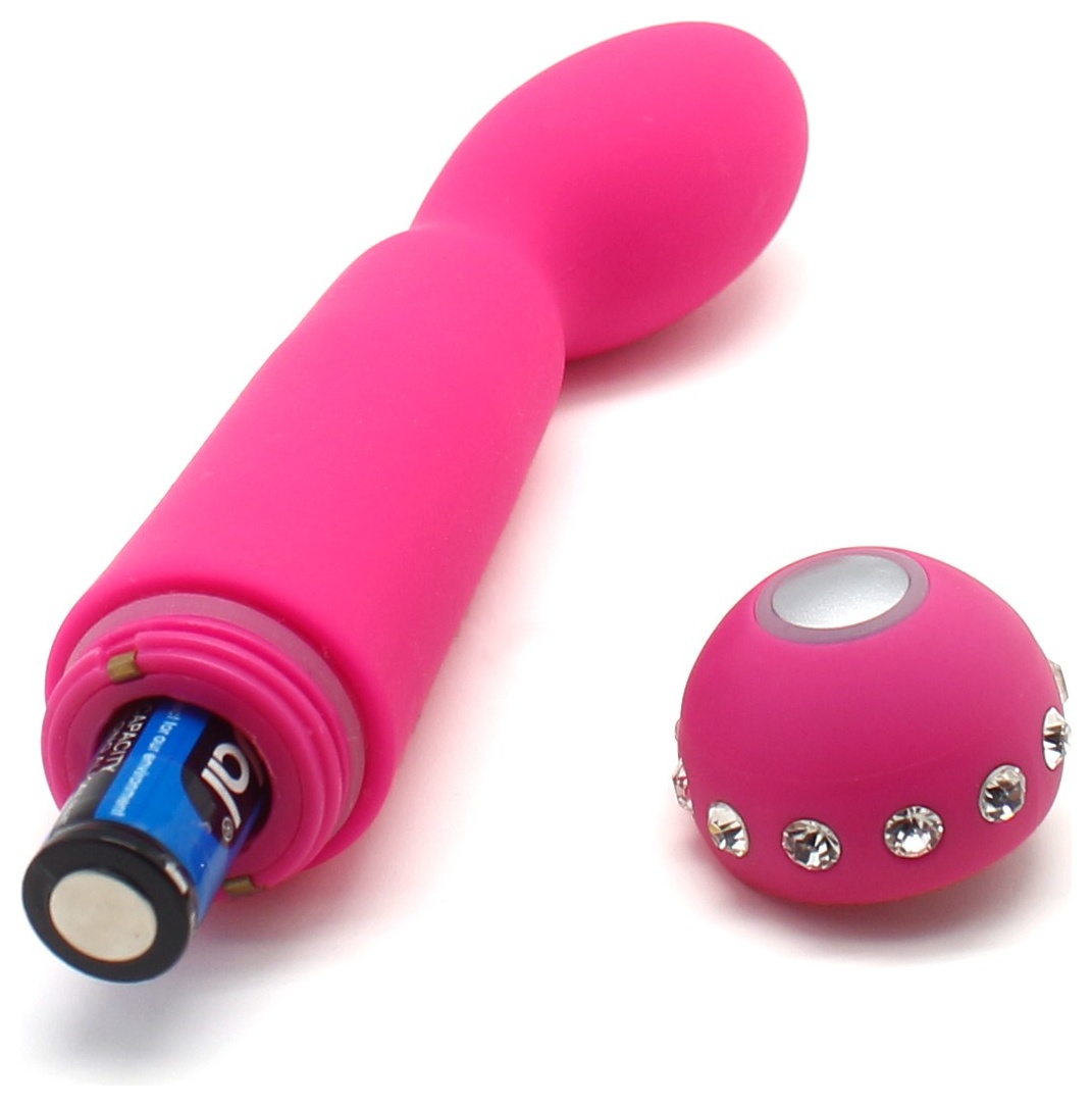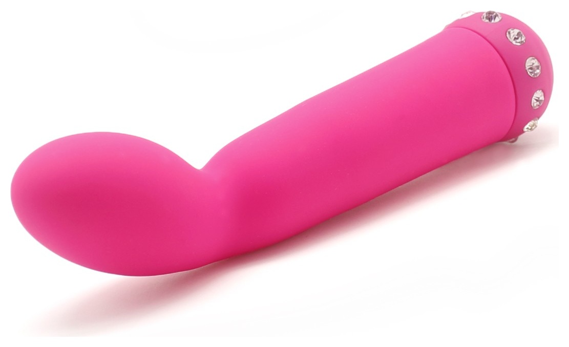 Аккуратный вибратор небольшого размера идеально подойдет для стимуляции точки G благодаря своей изогнутой форме. Изготовлен из нежнейшего силикона, бархатистого на ощупь, украшен стразами. Имеет 10 режимов вибрации, которые регулируются кнопкой в основании игрушки. Рабочая длина - 12 см.