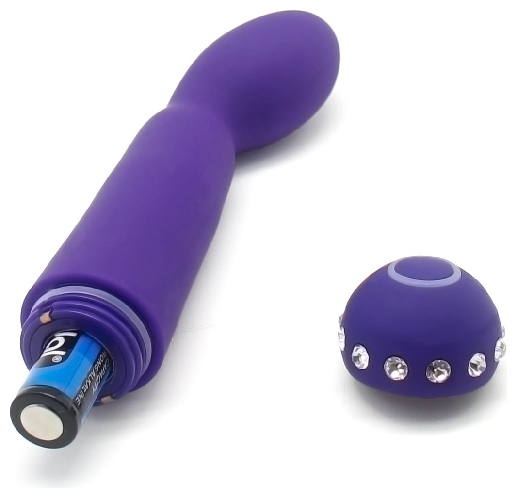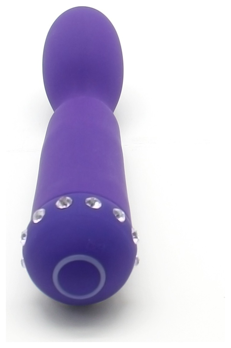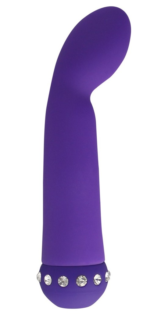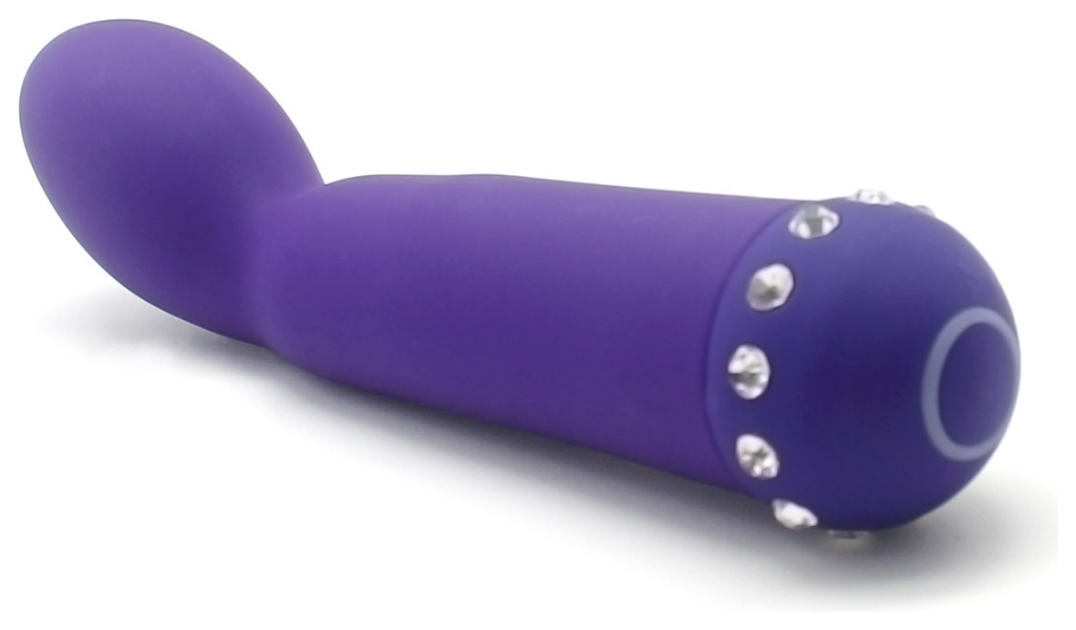 Аккуратный вибратор небольшого размера идеально подойдет для стимуляции точки G благодаря своей изогнутой форме. Изготовлен из нежнейшего силикона, бархатистого на ощупь, украшен стразами. Имеет 10 режимов вибрации, которые регулируются кнопкой в основании игрушки. Рабочая длина - 12 см.