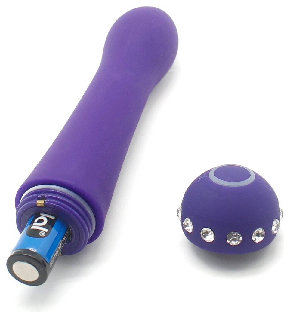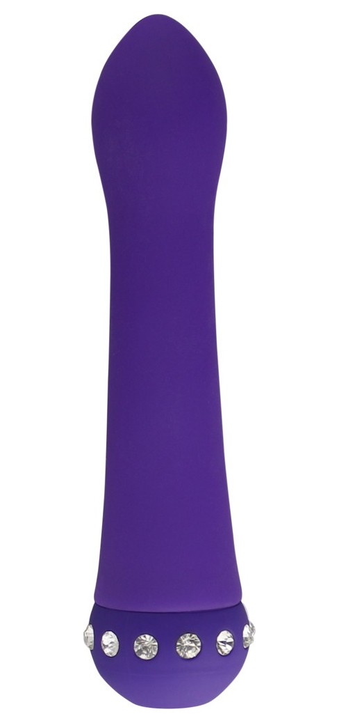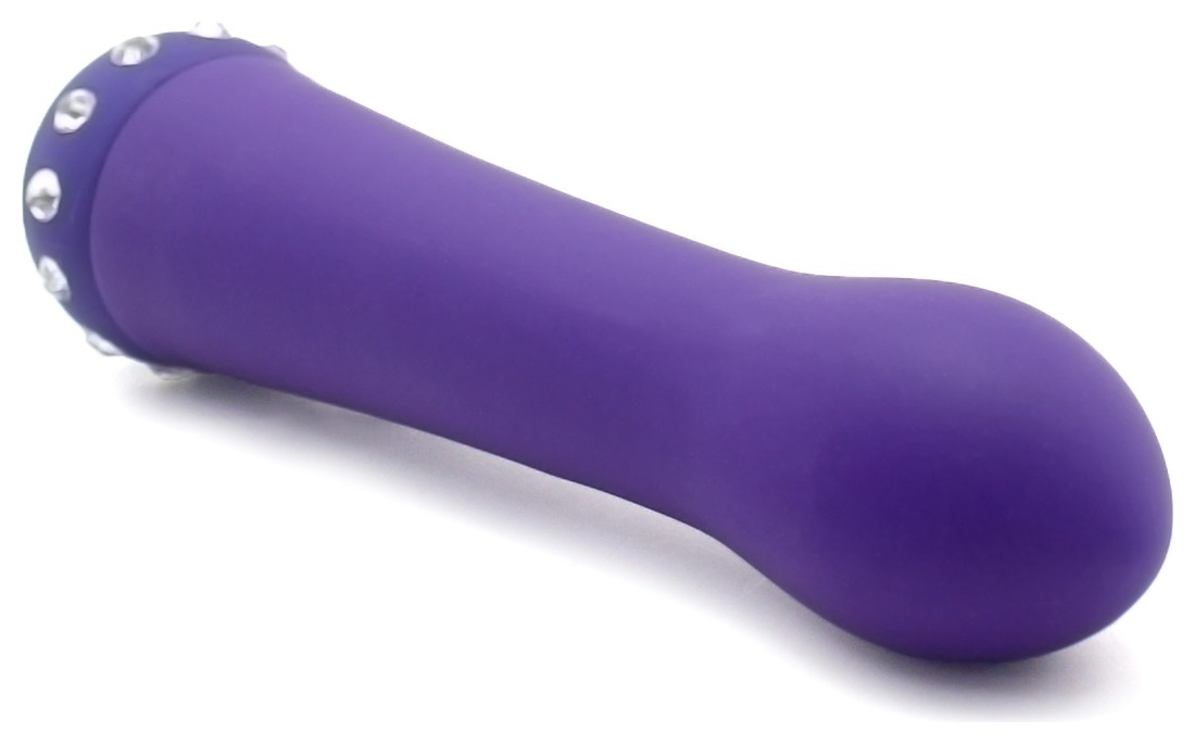 Аккуратный вибратор небольшого размера идеально подойдет для стимуляции точки Джи благодаря своей форме. Изготовлен из нежнейшего силикона, бархатистого на ощупь, украшен стразами. Имеет 10 режимов вибрации, которые регулируются кнопкой в основании игрушки. Рабочая длина - 12 см.