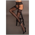 Женские однотонные стрип-панти, имитирующие чулки с поясом. Пояс и коронка чулок украшены геометрическим узором, соединяясь друг с другом кружевными лентами. Модель выпускается в едином размере.