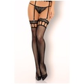 Женские чулочки в мелкую сеточку для ношения с поясом. Украшены кружевной коронкой и вертикальными тесемками с декоративными элементами.
