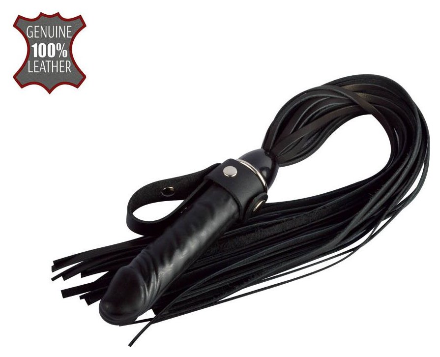 Необычный сексуальный атрибут в виде кожаной плети с рукоятью в виде фаллоса из натурального латекса. Плеть состоит из гладких хвостов натуральной кожи, которые образуют единый пучок, способный качественно разогреть тело партнёра. Рукоять-фаллос изготовлен из натурального латекса и имеет рельефную реалистичную форму. Универсальность конструкции секс-игрушки, значительно разнообразит интимные отношения и придаст им нотку пикантности и чувственности, что сделает её любимым сексуальным атрибутом Вашей пары. Рабочая длина рукояти - 14 см., диаметр - 3,2 см. Длина ударной части - 40 см.