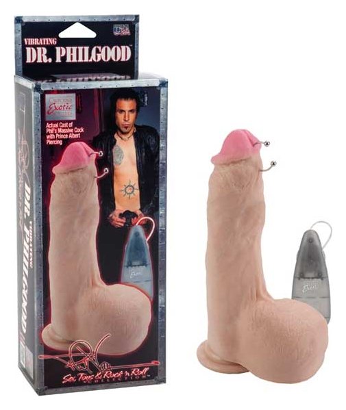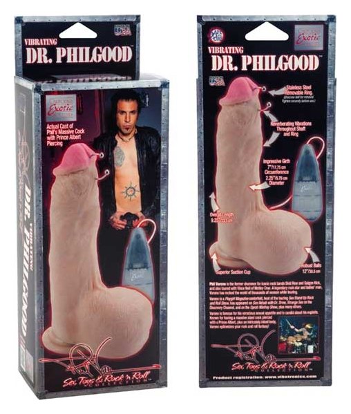 Фаллоимитатор-реалистик Phil Varone DR. PHILGOOD – детализированная копия члена барабанщика Phil Varone с присоской и мошонкой, с мультискоростным вибратором с выносным пультом, текстура и окрас как у настоящего члена, ручная работа пирсинг в головке. Рабочая длина - 15,25 см.