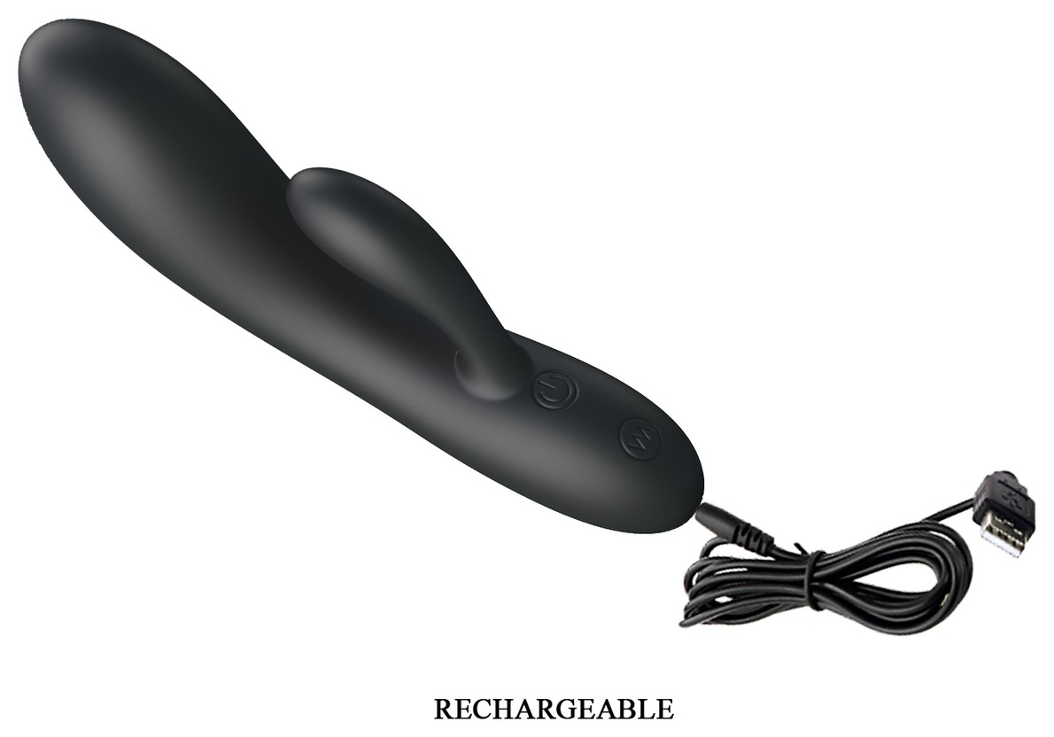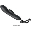 Многоскоростной перезаряжаемый вибратор черного цвета в компактном размере. Имеет клиторальный стимулятор с расположенным в нем моторчиком.