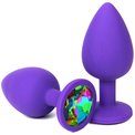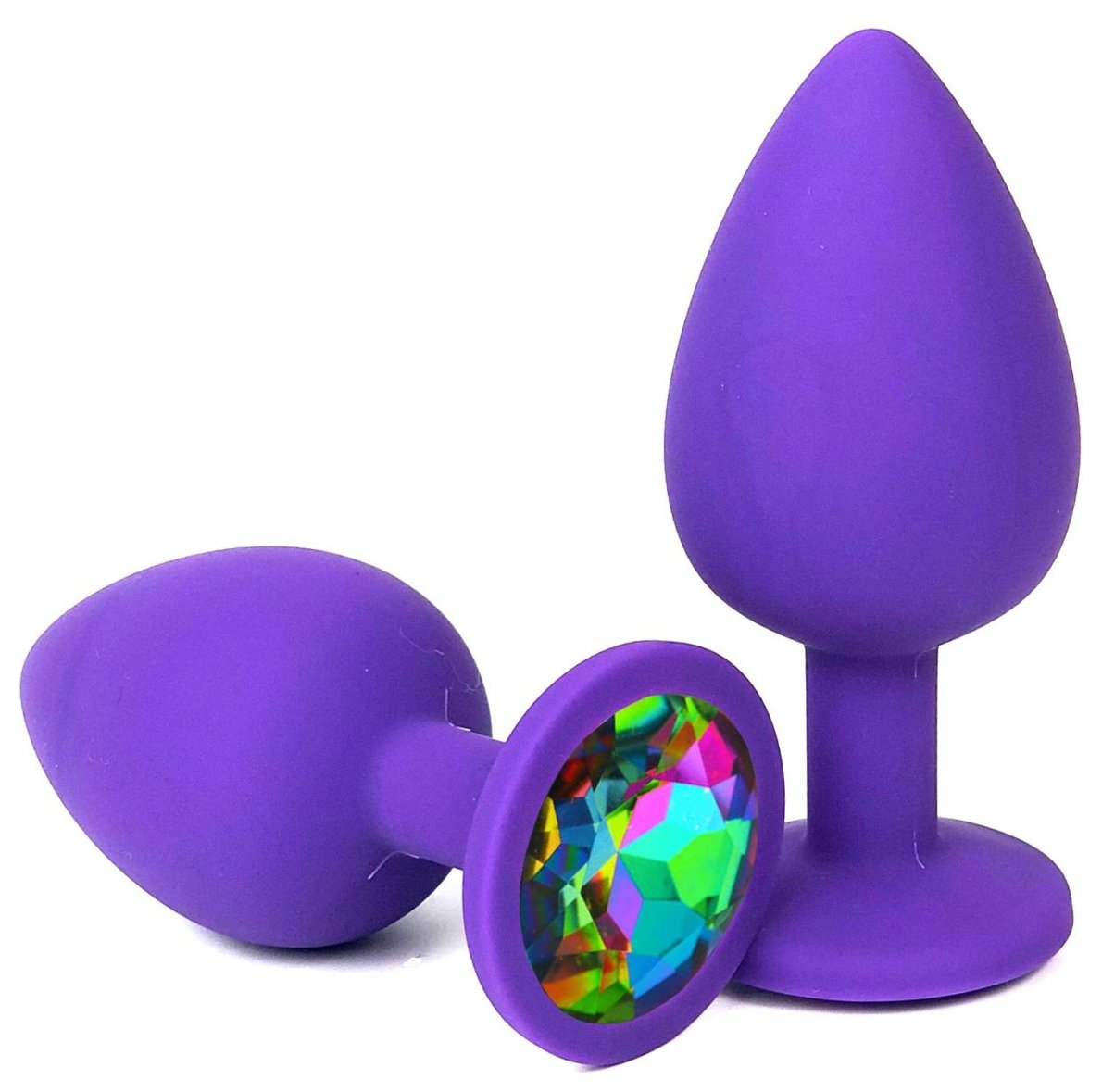 Фиолетовая анальная пробка с разноцветным стразом - 6,8 см
