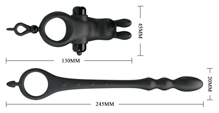 В набор входит эрекционное кольцо с вибратором для клитора и анальный стимулятор, который имеет сцепку с эрекционным кольцом. Выполнены из силикона. Длина кольца - 13 см., ширина - 4,5 см. Длина хвоста - 24,5 см.