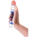 Стеклянный двусторонний фаллоимитатор с шишечками - 20 см