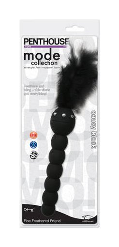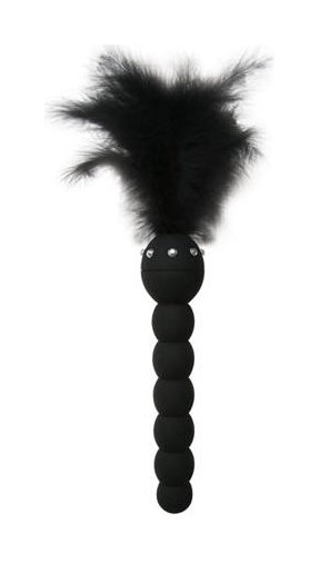 Черная анальная елочка с вибрацией украшена перьями и стразами. Елочка водонепроницаема. Можно использовать и для анальных ласк, и для клиторальной стимуляции, и для щекотания.