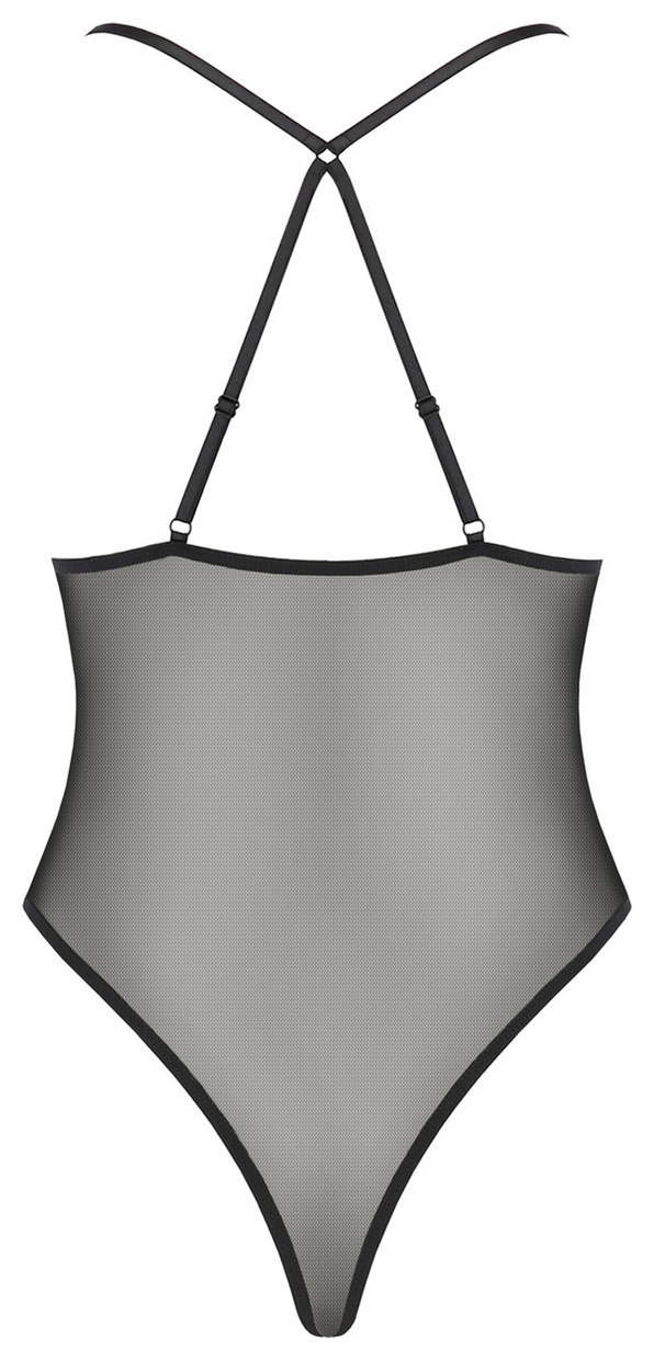 Соблазнительное боди Vendi выполнено из полупрозрачного тюля и эластичного гипюра с цветочным узором. Чашки лифа мягкие без косточек, декорированы пикантными разрезами. Бретели регулируются по длине.