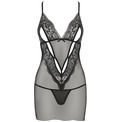 Соблазнительная сорочка Vendi выполнена из полупрозрачного тюля и эластичного гипюра с цветочным узором. Чашки лифа мягкие без косточек, декорированы пикантными разрезами. Бретели регулируются по длине. Трусики не входят в комплект!
